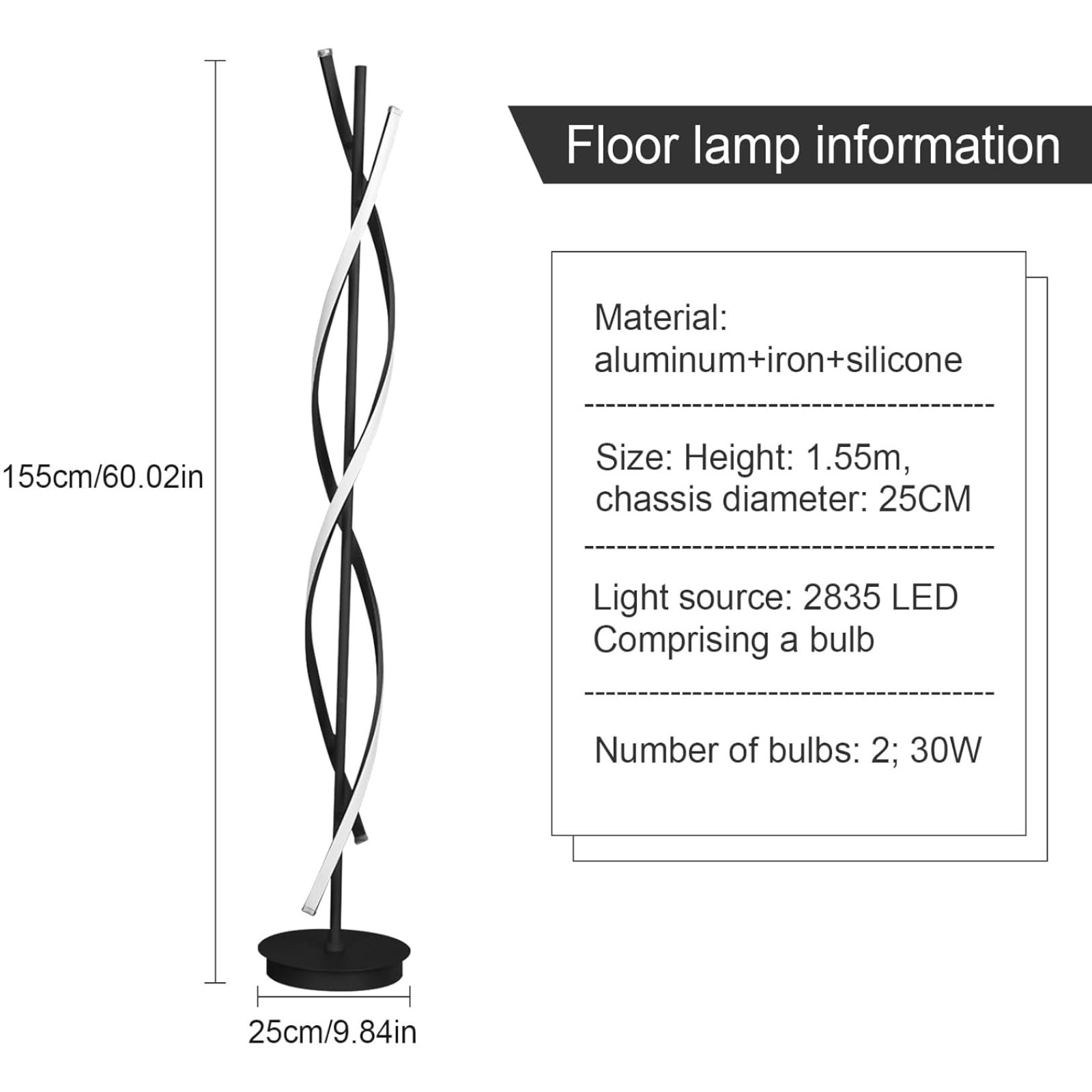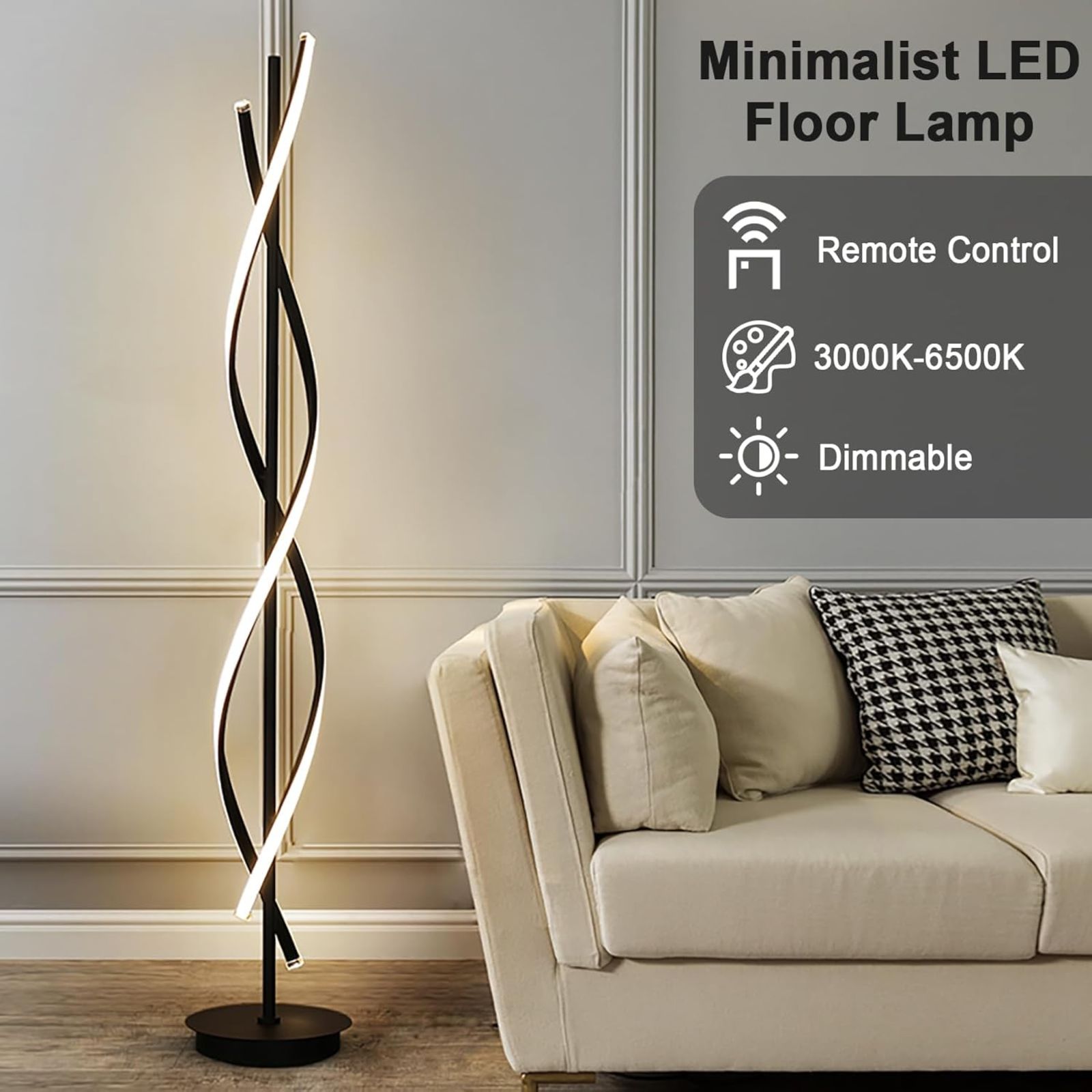 Shto një prekje elegante dhe moderne në shtëpinë tënde me këtë llambë dyshemeje LED me dizajn spiral unik. Ideale për sallon, dhomë gjumi apo zyrë, kjo llambë kombinon stilin minimalist me funksionalitet të avancuar për ndriçim perfekt në çdo moment.