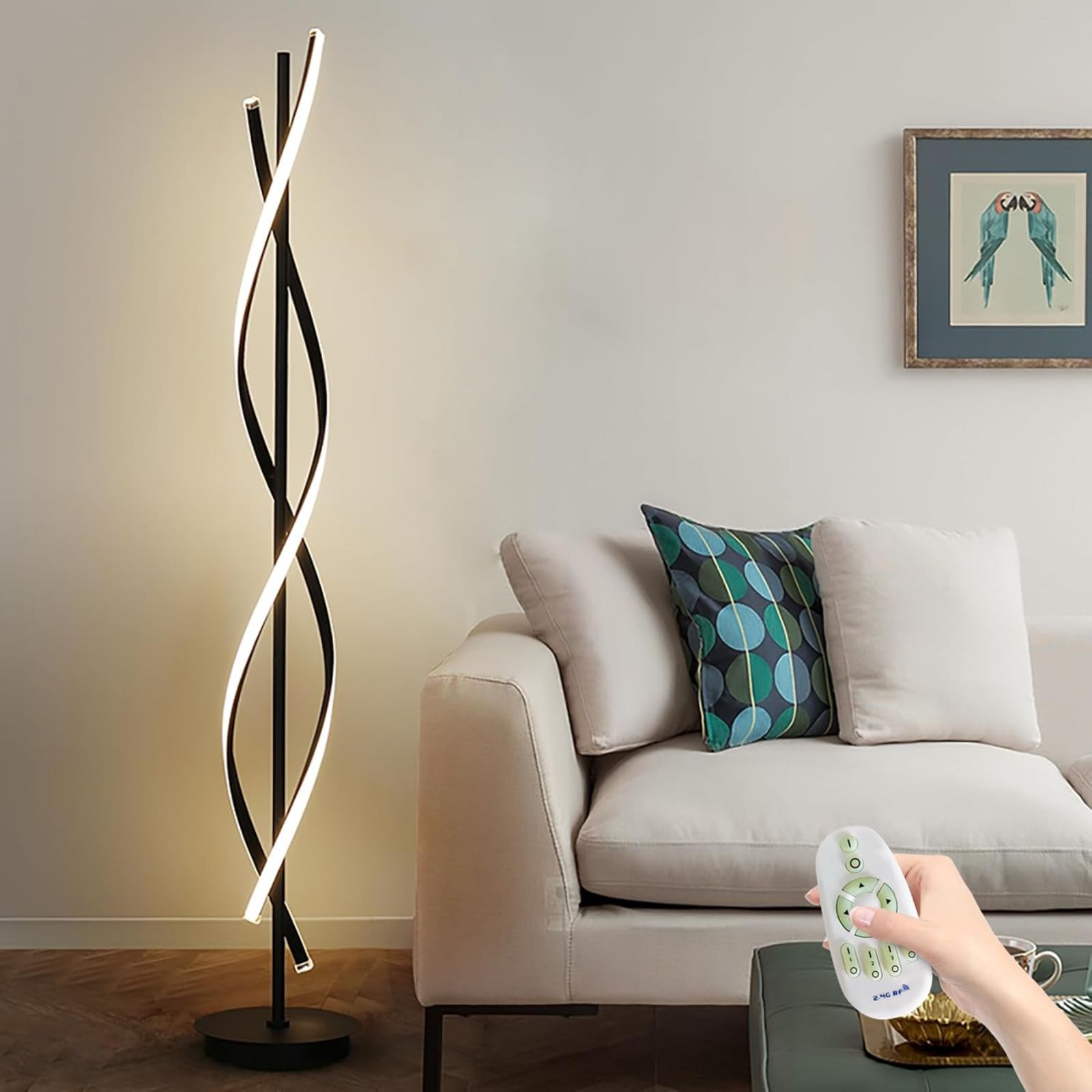 💡 Llambë Dyshemeje LED Moderne Spiral – Me Telekomandë & Dimmable (3 Ngjyra)
