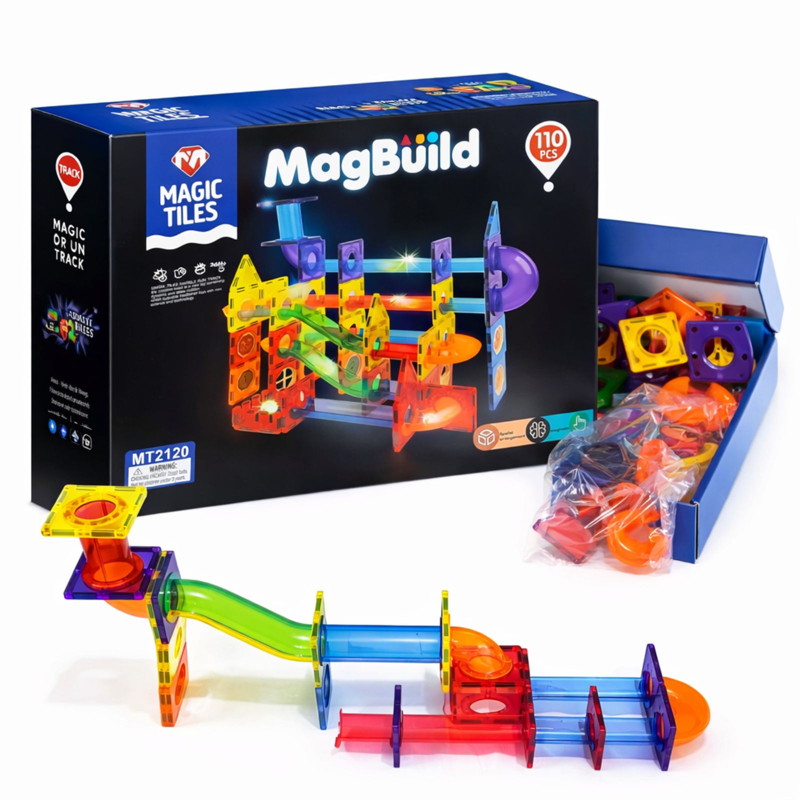 Magic Tiles Magnetic Building Set me 110 pjesë transparente magnetike është një lodër edukative STEM që i lejon fëmijët të krijojnë struktura, ndërtesa dhe pista kreative për topat LED. Me pjesë magnetike që lidhen lehtë, fëmijët mund të ndërtojnë dhe rindërtojnë pa kufij duke zhvilluar imagjinatën dhe aftësitë logjike 🧠✨