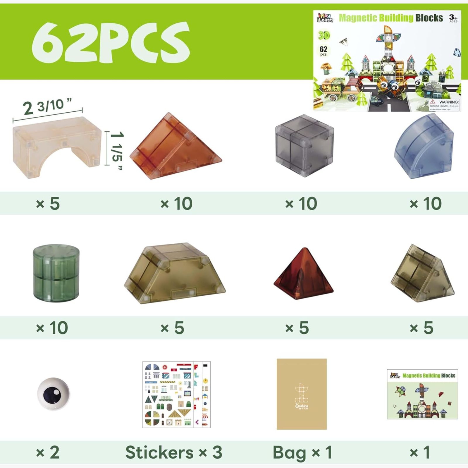 iPlay, iLearn Magnetic Blocks 62 PCS është lodra ideale për fëmijët që duan të ndërtojnë, të mësojnë dhe të krijojnë pa kufij 🧲🧱✨