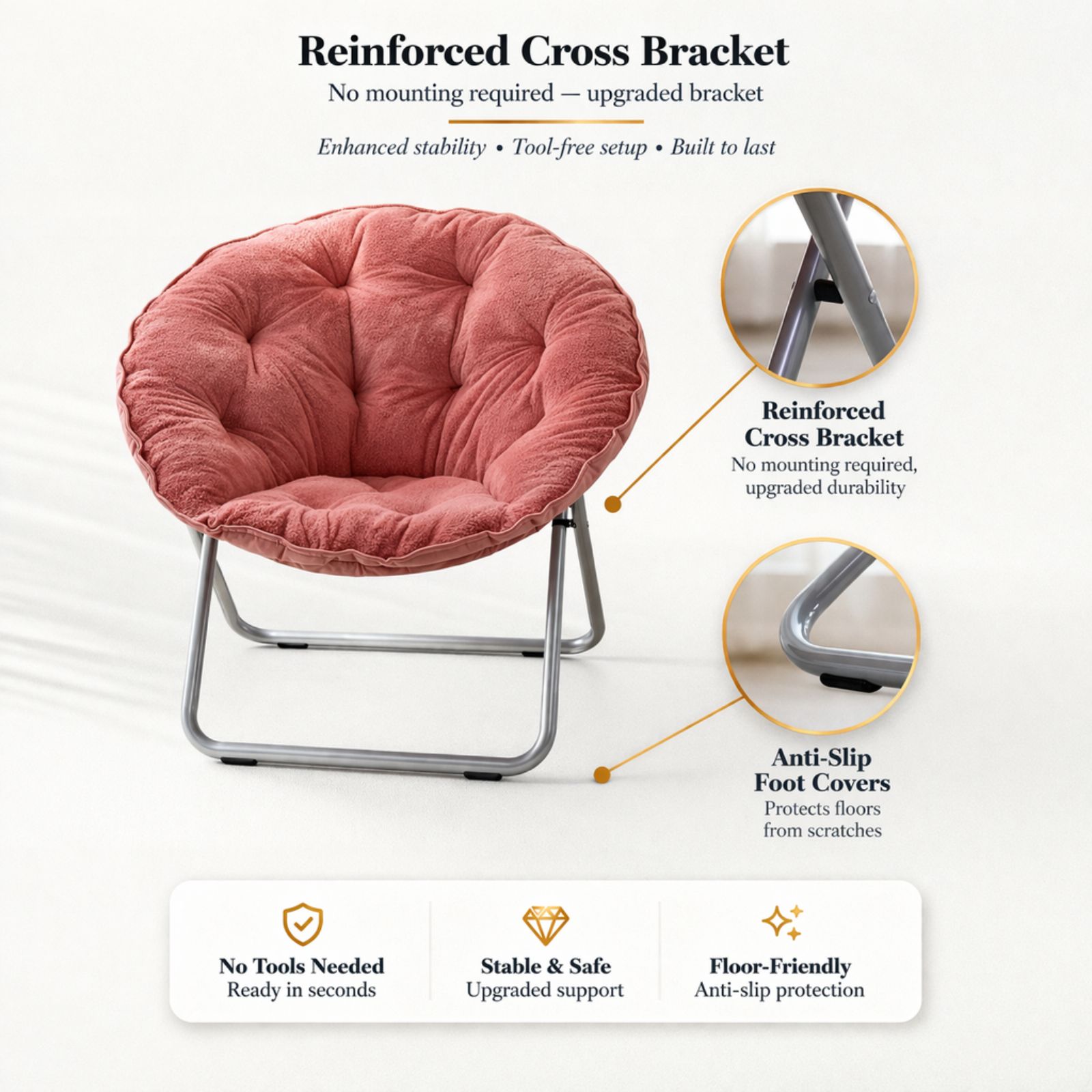 Sillni rehati dhe stil në shtëpinë tuaj me këtë karrige moderne relax “Saucer”, e dizajnuar për komoditet maksimal dhe pamje elegante. Me material të butë si lesh artificial dhe strukturë të fortë metalike, kjo karrige është perfekte për pushim, lexim apo relaksim.