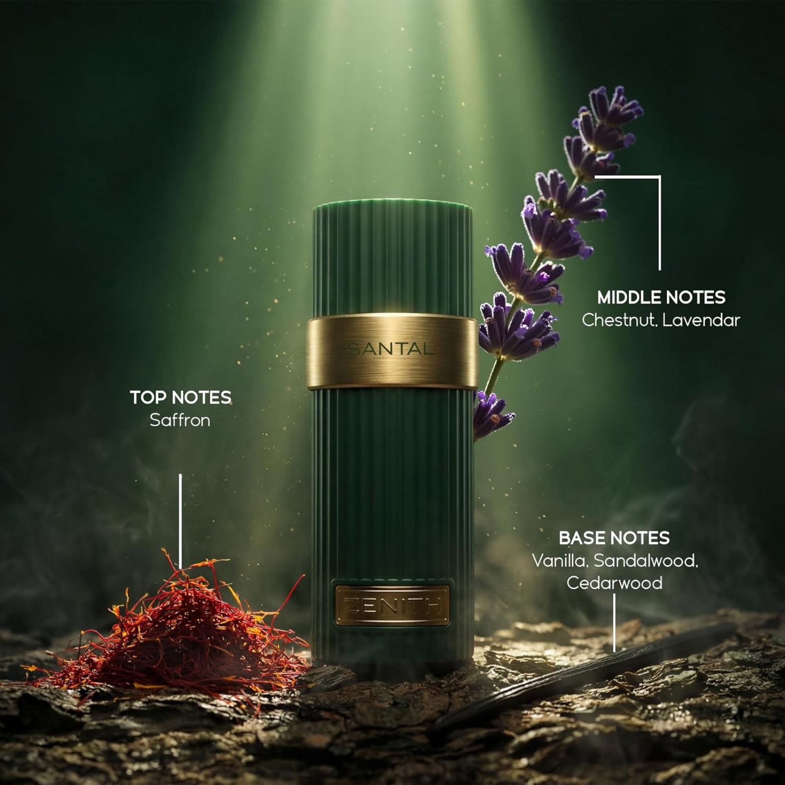 Një aromë luksoze, e ngrohtë dhe thellësisht elegante. Zenith Santal sjell një kombinim perfekt mes erëzave të rafinuara dhe drurëve kremozë për një eksperiencë moderne dhe sensuale.