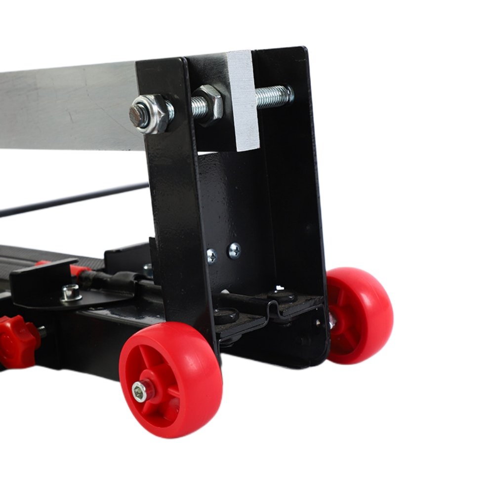 Ky prerës përdor një rrotë të fortë prerëse, zakonisht prej çeliku të fortë ose karbidi, që së pari shkruan një vijë të drejtë në sipërfaqen e pllakës dhe pastaj një mekanizëm aplikon presion për të ndarë pllaken në vijë për një prerje të pastër dhe të qetë. Ky metodë funksionimi është karakteristike për prerësit manualë të pllaka — e njëjta ide si prerësit e standardizuar që përdorin shina udhëzuese për të siguruar që prerja të jetë krejt drejtë dhe precize.