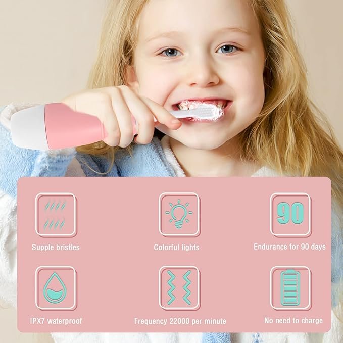 5. **Efikasiteti i Pastrimit**: Furça dhëmbësh elektrike është në gjendje të pastrojë thellë dhe të heqë pllakën dhe mbeturinat nga dhëmbët e fëmijëve, duke ofruar një pastrim të përsosur oral.