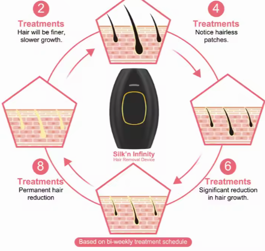 Përdor dritën e pulsuar për të shkatërruar folikulat e qimeve në mënyrë të sigurt dhe efektive, duke siguruar zvogëlim gradual të qimeve pas çdo trajtimi.