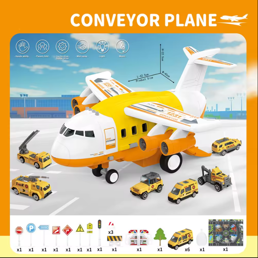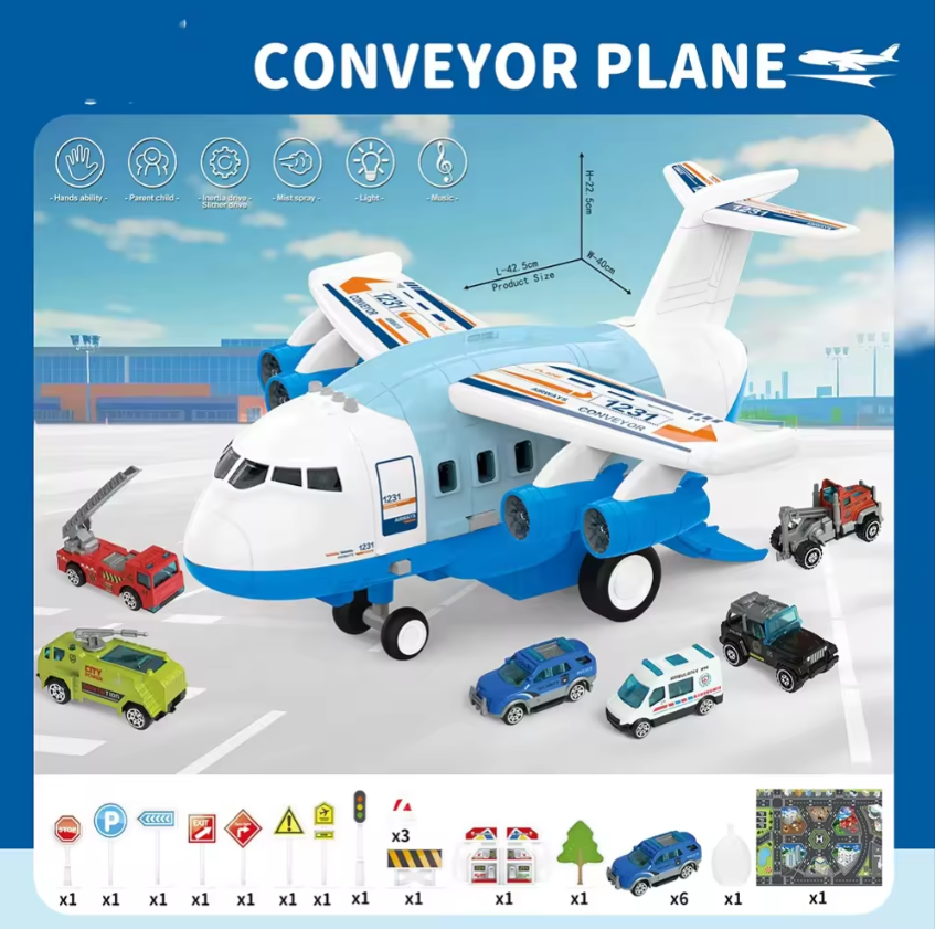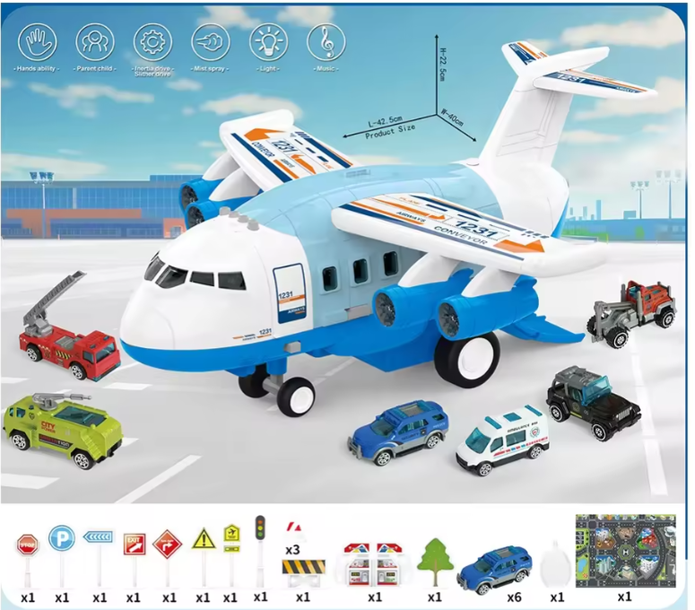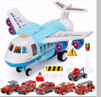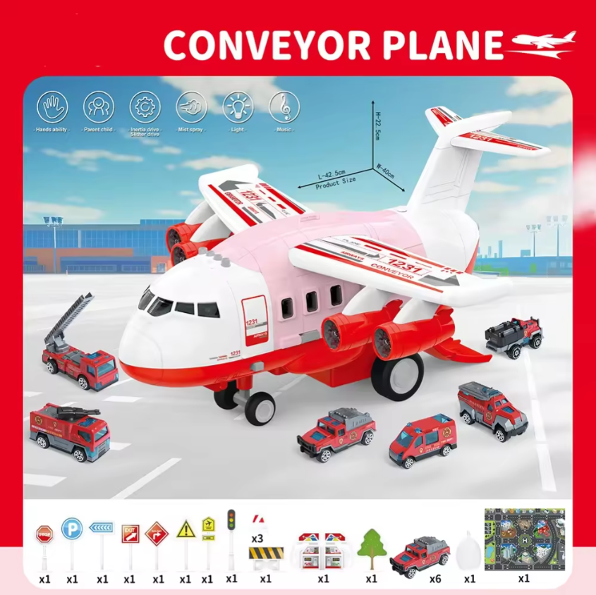 Drita e zërit e fërkimit Inercia Gjurmët qesharake Magazinimi Lodër aeroplani transportues me kamion zjarrfikës me aliazh të vogël dhe shenjë rrugore