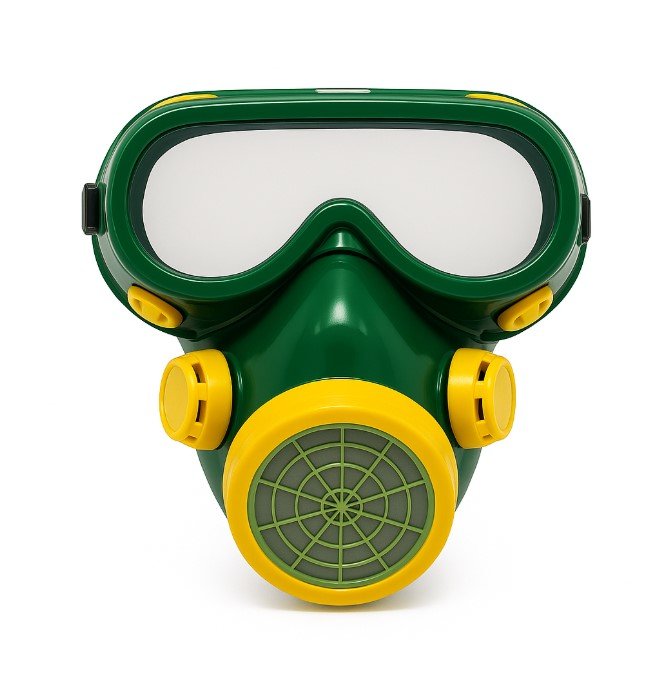 Kjo maskë e kombinuar ofron mbrojtje të dyfishtë: për frymëmarrje dhe për sy, duke e bërë të përshtatshme për punë në ambiente me pluhur, grimca të imëta apo për përdorim gjatë përdorimit të pesticideve, bojërave, kimikateve të lehta dhe gjatë pastrimit industrial.