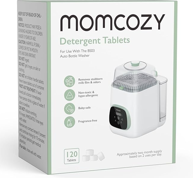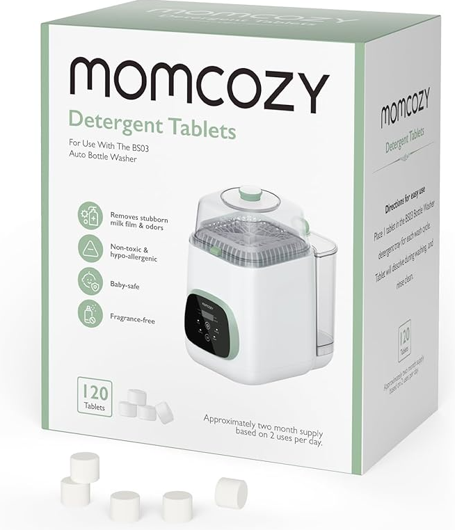 Tabletat pastruese Momcozy janë krijuar posaçërisht për larësin automatik të biberonave Momcozy BS03, duke siguruar higjienë të plotë dhe eliminim të mbetjeve të qumështit apo aromave të pakëndshme. Të sigurta për bebe, pa aromë dhe hipoalergjike, këto tableta garantojnë pastrim të thellë dhe të shpejtë.