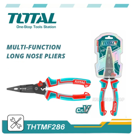 Kjo është pinca multifunksionale me majë të gjatë TOTAL Tools, model THTMF286, e ndërtuar për punë elektrike dhe mekanike ku kërkohet precizion dhe shumëfunksionalitet.