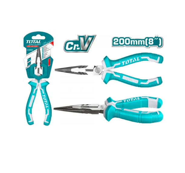 Kjo është pinca TOTAL Tools Long Nose, model THT210808, një vegël profesionale e krijuar për kapje, prerje dhe manipulim preciz në punime elektrike, mekanike dhe artizanale.