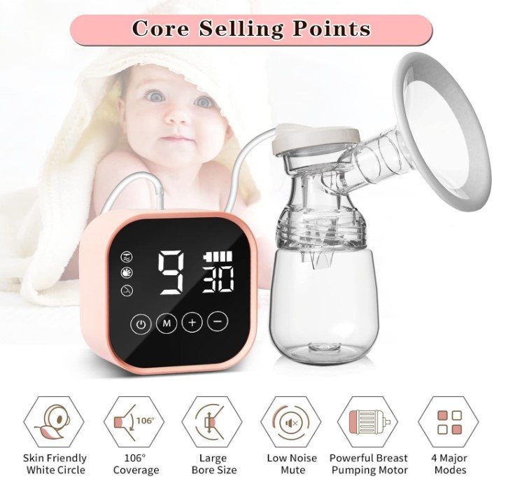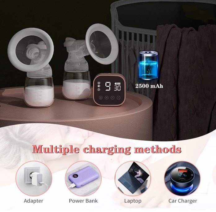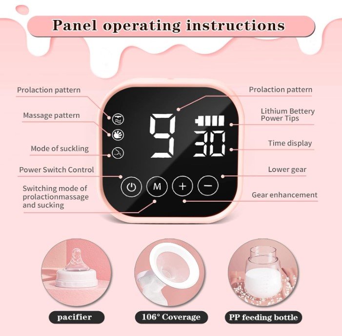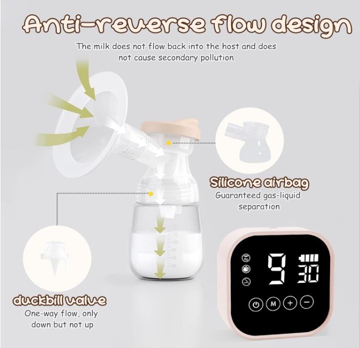 Seti përfshin dy shishe për mbledhjen e qumështit, biberonë silikoni, kapakë mbrojtës dhe jastëkë të butë silikoni për rehati maksimale gjatë përdorimit. Pajisja është e pajisur me ekran LED digjital, i cili tregon qartë modalitetin, nivelin e fuqisë dhe kohën e përdorimit.