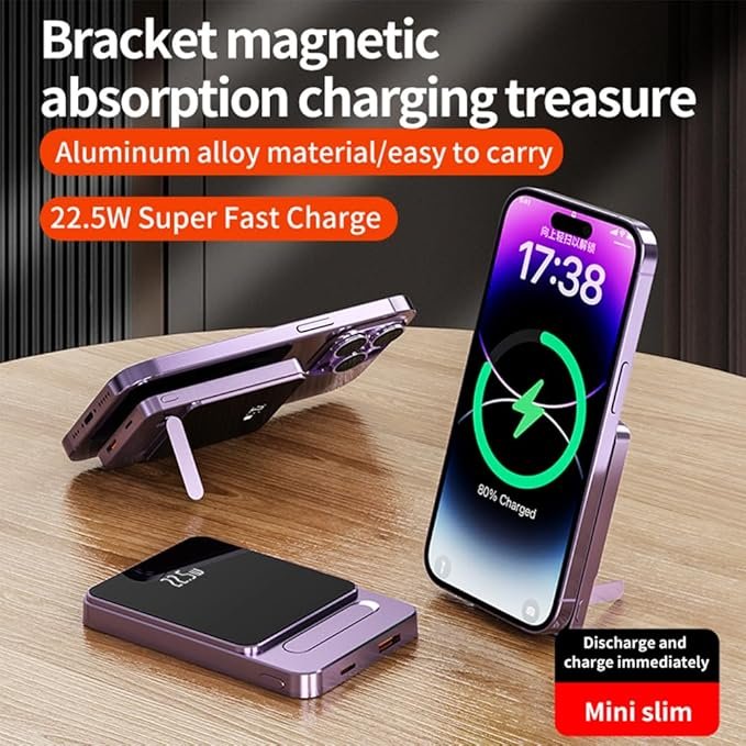 Power Bank Magnetic 22.5W është bateri portative e dizajnuar për karikim të shpejtë dhe të sigurt, me kapacitet 5000mAh dhe funksion wireless charging. Magneti i fortë e mban telefonin të fiksuar pa pasur nevojë për kabllo, ideal për përdorim të përditshëm, udhëtime apo punë. Teknologjia e tij inteligjente siguron mbrojtje nga mbinxehja dhe mbikarikimi.