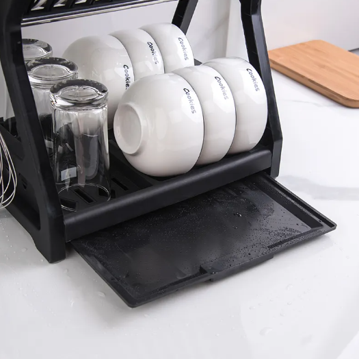 - Organizim i Efektshëm: Rafti ofron dy nivele të ndara që lejojnë organizimin e efektshëm të enëve të kuzhinës, duke ndihmuar në qasjen e lehtë dhe të organizuar ndaj tyre.