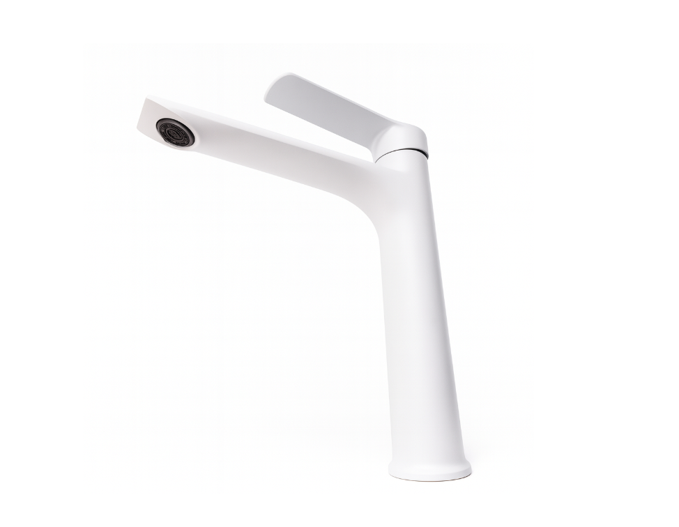 Rubineti është i gjatë (tip “tall basin mixer”), i përshtatshëm për lavamanë të vendosur mbi banak (vessel sink).