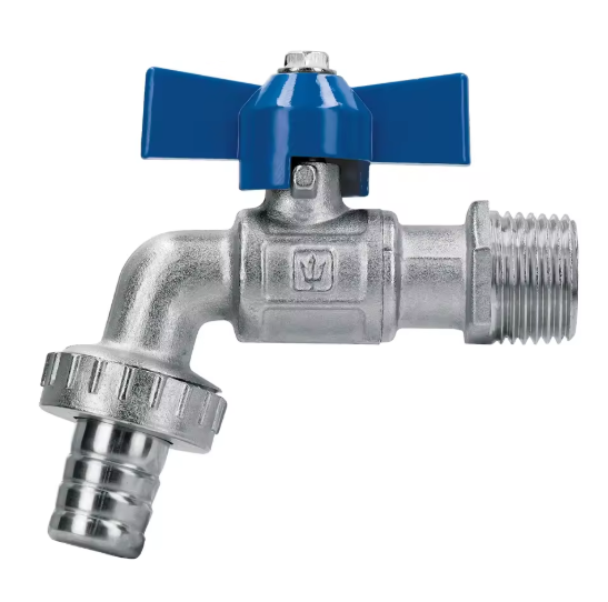 Kjo që po tregon është një rubinet metalik me valvul topi (ball valve tap), i përdorur zakonisht për ujë të ftohtë, lavazh, kopshtari apo lidhje me zorrë uji. Ja disa detaje më të hollësishme: