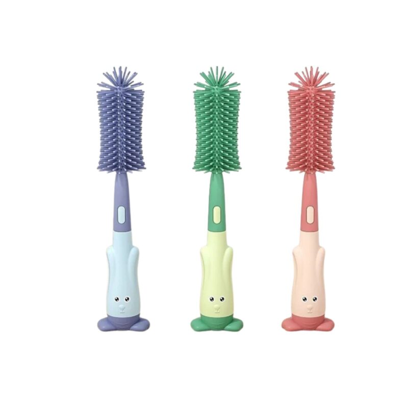 Set Furçash Silikoni për Shishe Bebesh – 360° Rrotulluese