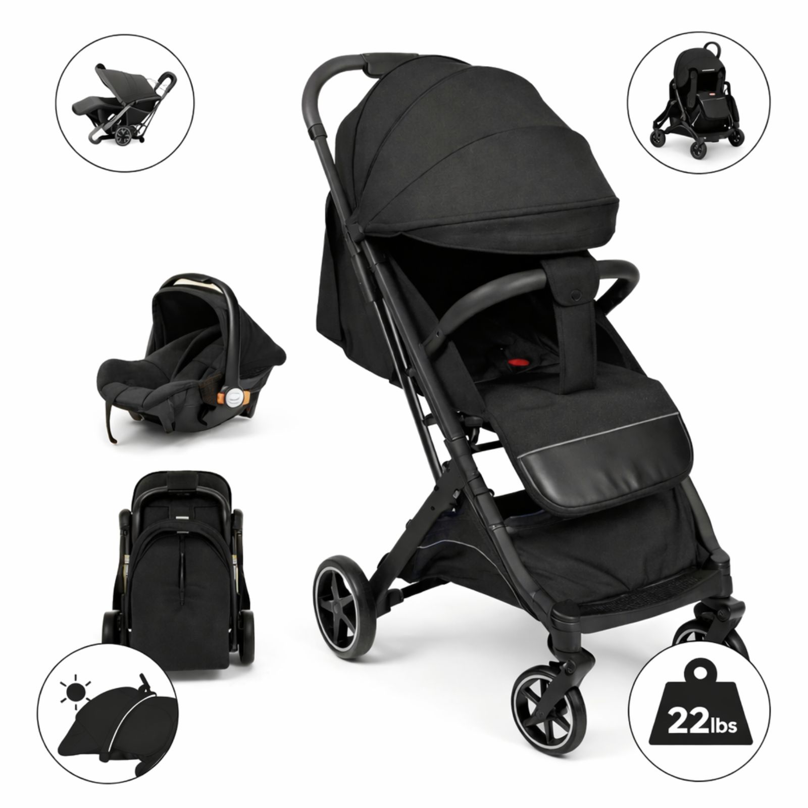 Seti përfshin karrocë shëtitjeje dhe ulëse veture (car seat), duke ofruar fleksibilitet për përdorim të përditshëm, shëtitje apo udhëtime. Korniza e lehtë por e qëndrueshme garanton manovrim të lehtë, ndërsa sedilja e butë ergonomike dhe rripi i sigurisë sigurojnë komoditet dhe mbrojtje për beben.