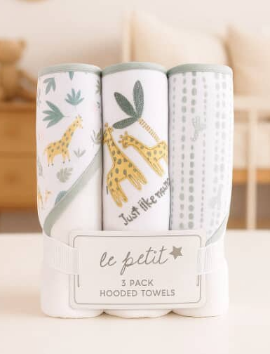 Ky set përfshin 3 peshqirë të butë me kapuç, perfektë për pas larjes së foshnjës. Dizajni është ideal për djem, me motive të ëmbla dinozaurësh dhe ngjyra të buta, neutrale.