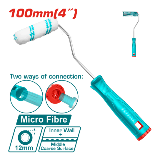 Ky është një set rulash për lyerje (Paint Roller Refills) nga TOTAL, me gjatësi 100 mm (4 inç) – i destinuar për punime të vogla, qoshe, korniza, dhe detaje. Seti vjen me 12 copë në një paketim, duke ofruar vlerë të lartë për përdorim të përsëritur.