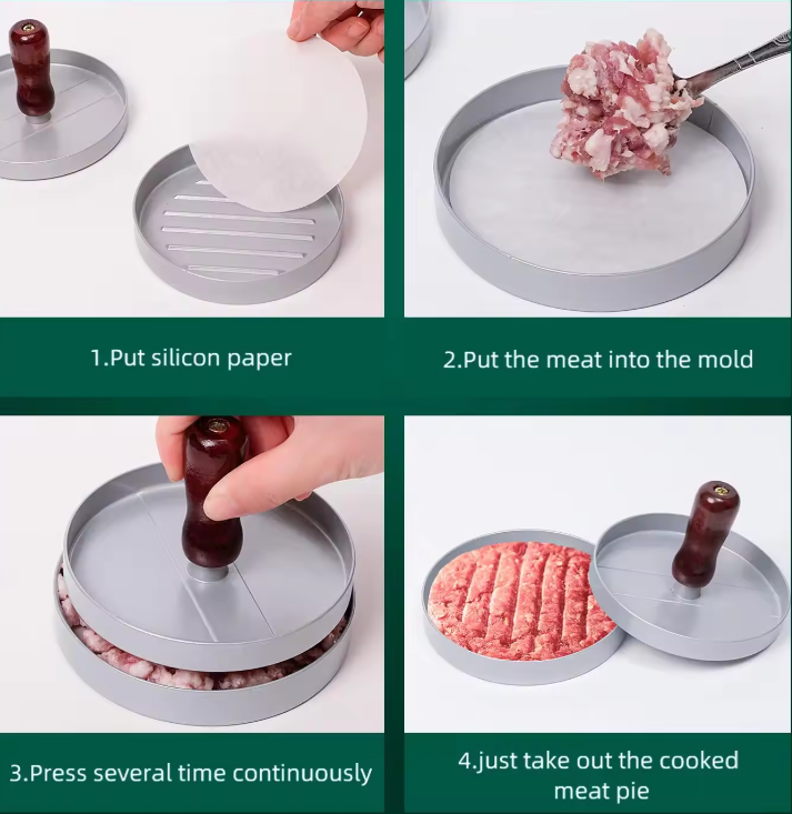 Avantazhet**: Lejon formimin e hamburgereve të rregullta dhe të përshtatshme, duke siguruar një shijim të barabartë dhe një gatim më të lehtë