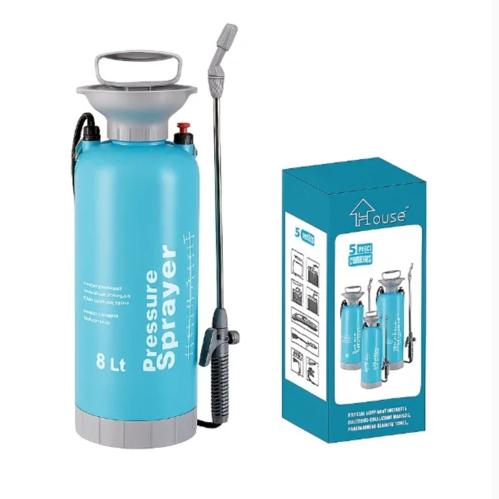 Ky është një spërkatës manual me presion, me kapacitet 8 litra, i dizajnuar për përdorim të thjeshtë, të sigurt dhe efikas në bujqësi, kopshtari dhe ambiente shtëpiake.