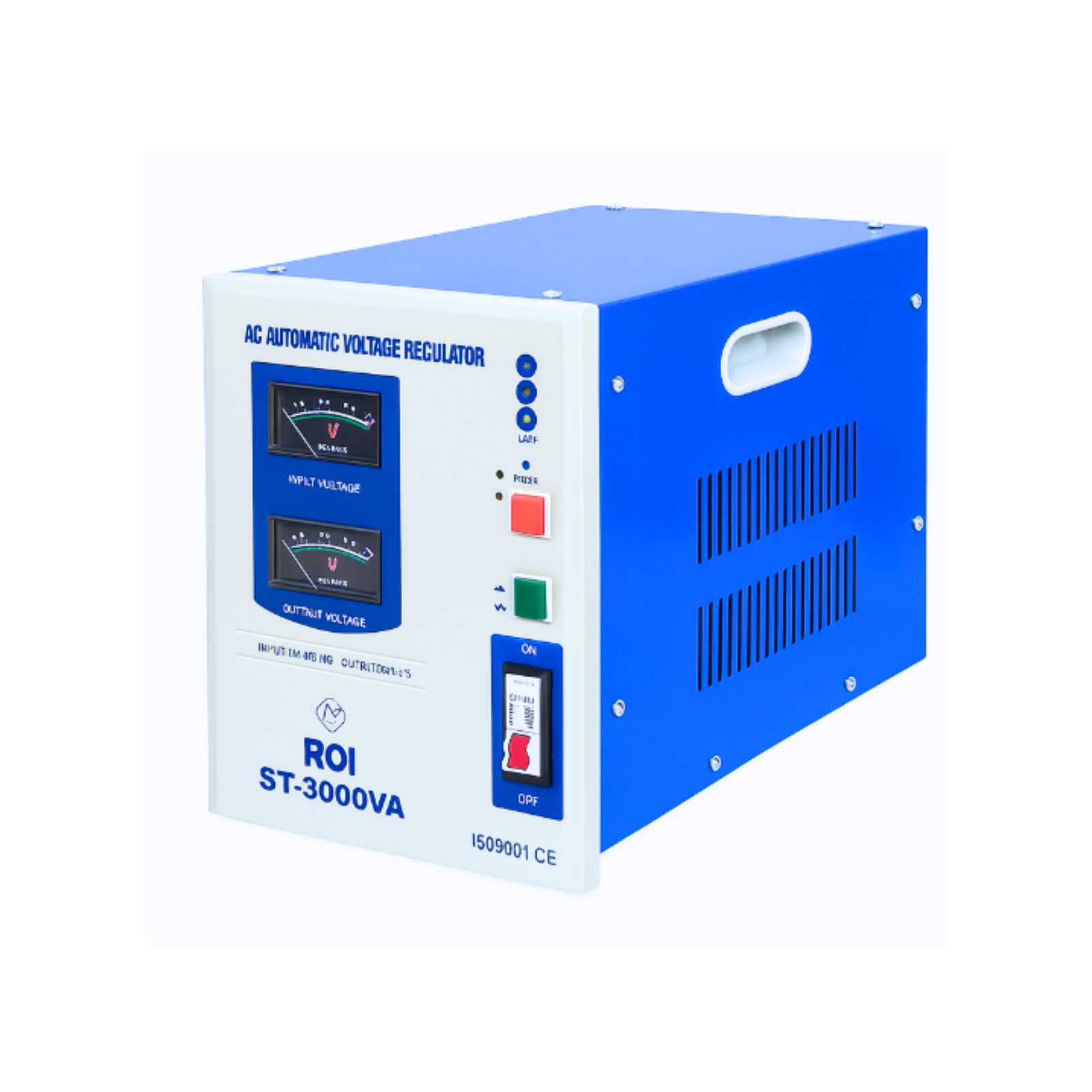 ROI ST-3000VA është një stabilizator tensioni që mban rrymën në 220V të qëndrueshme, edhe kur voltazhi bie ose rritet shumë. Kjo mbron pajisjet elektrike nga dëmtimet.