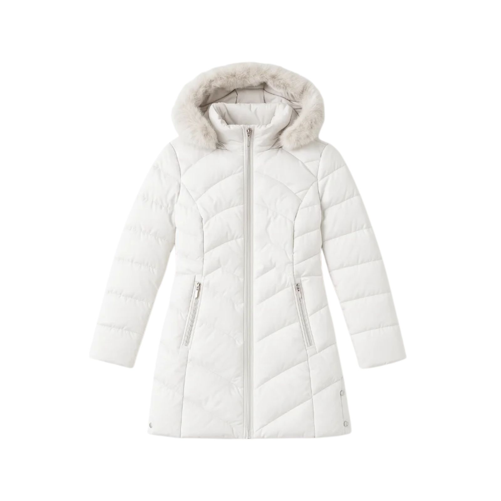 🤍 Xhupë e Bardhë Dimërore me Kapuç & Detaj Peliçe