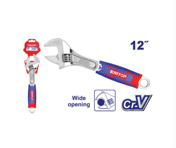 Çelës francez i rregullueshëm “Wide Opening” EMTOP – 12″ Cr-V