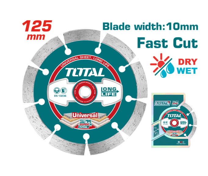 TOTAL Diamond Cutting Disc 125mm (TAC2111251) – Disk Prerës për Beton, Gur dhe Tulla, Fast Cut